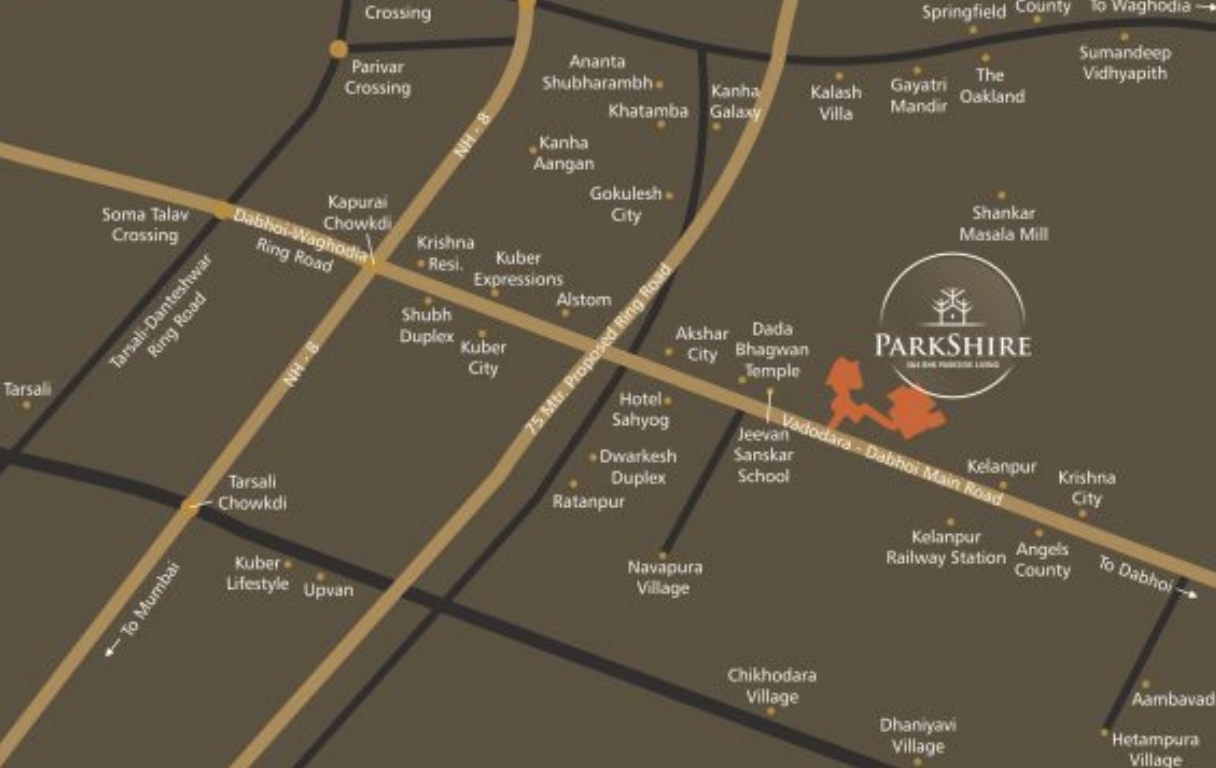 ParkShire Villas — a serene, secure, and thoughtfully designed residential community spread across 6.58 acres in the heart of Vadodara. Offering spacious 3 and 4 BHK villas, ParkShire redefines urban living with a perfect blend of elegance and comfort. Each unit is crafted with premium finishes, from smooth, elegant tiles to private parking spaces that welcome you after a long day. With only 176 exclusive units, the project ensures a peaceful environment where you can truly feel at home.