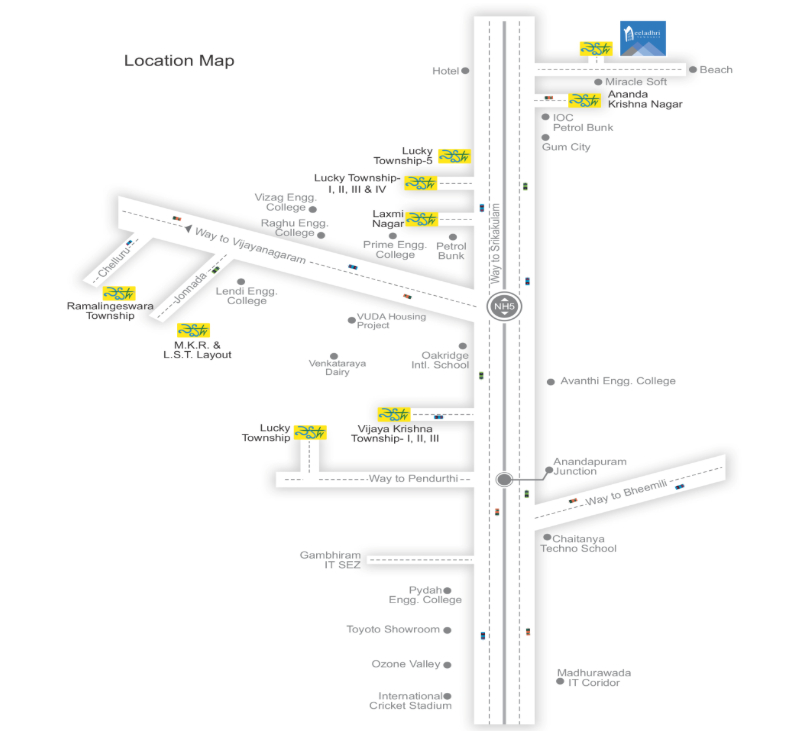The plot sizes within the township range from 90 to 450 sq.yrd, catering to different budget ranges and construction needs. Designed with future growth in mind, Neeladhri Township combines strategic location advantages with a focus on community living, making it ideal for those looking to build their dream homes or invest in a promising residential area close to Vizianagaram and Vizag.