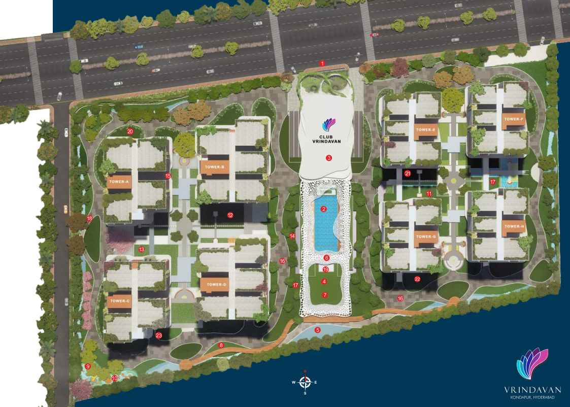 Namishree Vrindavan is a premium residential project by Namishree Infrastructure and Projects, located in the well-connected area of Kondapur, Hyderabad. Spread across 9.5 acres of land, this under-construction development comprises 8 towers rising up to 49 floors, offering a blend of 2, 3, and 4 BHK apartments. With a total of 1846 units, the project promises spacious living, with unit sizes ranging from 1475 sq. ft. to 3375 sq. ft., catering to various lifestyle needs.