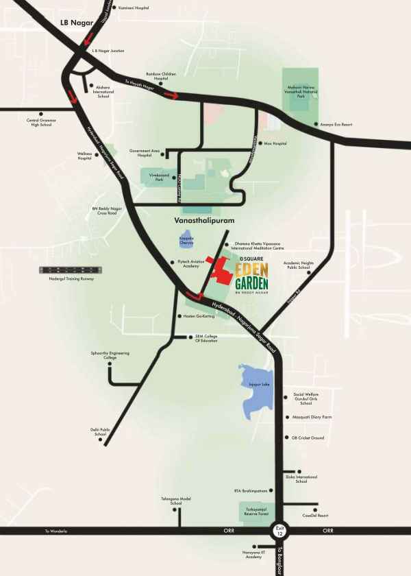 G Square Eden Garden is a premium plotted development project located in B N Reddy Nagar, Hyderabad. Spanning across a vast land area of 65 acres, this community offers a well-planned layout with a total of 484 plots. The project is currently ongoing and is designed to provide a blend of nature and modern infrastructure. With well-laid roads, landscaped open spaces, and essential utilities in place, it aims to offer residents a comfortable and serene lifestyle.