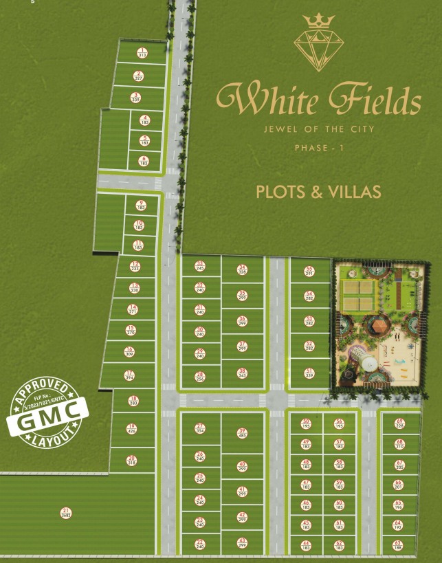 The project features three exquisite villa types—Gold, Diamond, and Platinum—each tailored to suit different lifestyle needs. Gold Villas offer cozy luxury with a home theater and terrace garden, while Diamond Villas provide larger spaces and dual parking for growing families. Platinum Villas redefine grandeur with a private pool, two kitchens, multiple rooms, and expansive living areas, making White Fields a true symbol of refined living.