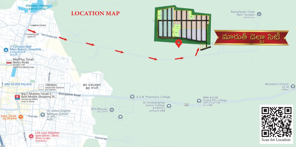 Maruthi Delta City, located in Tenali, Guntur, is a premium residential plotting venture designed to offer a perfect blend of comfort, convenience, and investment potential. Spread across an expansive 30 acres, the project comprises 400 well-planned residential plots ranging from 180 Sq.Yds to 300 Sq.Yds, catering to diverse space requirements. With RERA approval (P07320095644), it ensures transparency, legal security, and adherence to quality standards.