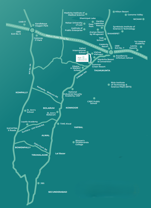 Currently under construction, Nestcon Meluha aims to deliver a lifestyle that balances comfort with contemporary aesthetics. Its strategic location in Thumukunta ensures good connectivity to Hyderabad’s key hubs while offering a peaceful residential atmosphere. The project’s thoughtful design, coupled with ample open spaces, makes it a suitable choice for those looking for a harmonious blend of luxury and tranquility.