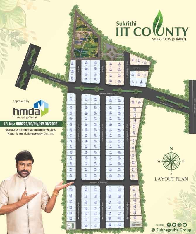 Subhagruha Sukrithi IIT County is a thoughtfully planned residential plotting venture in Kandi, Hyderabad, spread across 9 acres of land. The project offers around 150 plots, with sizes ranging from 137 sq.yds to 331 sq.yds, giving buyers the flexibility to choose according to their requirements. Its location near IIT Hyderabad and close connectivity to the Outer Ring Road makes it a highly attractive option for both investors seeking future value appreciation and families planning to build their homes in a peaceful yet well-connected area.