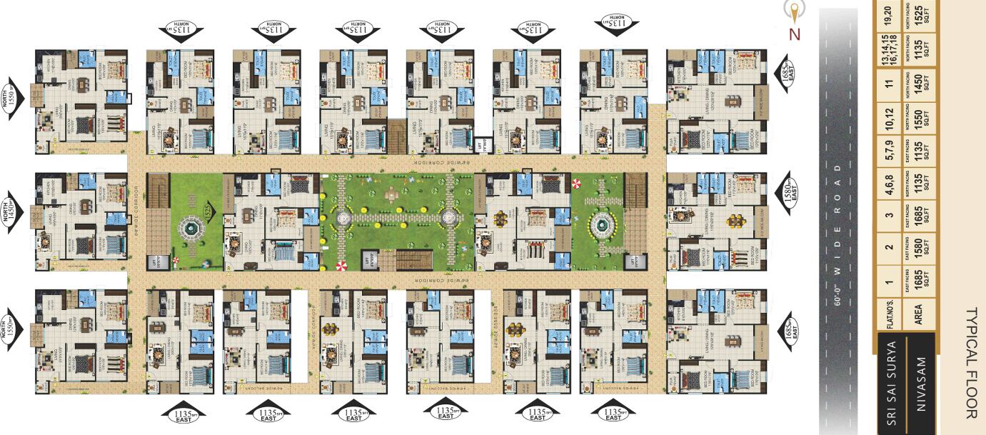 Sri Sai Surya Nivasam is a residential apartment project offering thoughtfully designed 2 and 3 BHK homes. Spread across 1 acre of land, the development comprises 100 well-planned units that cater to the needs of modern families. With unit sizes ranging from 1135 sq. ft. to 1685 sq. ft., the apartments provide ample living space while ensuring functionality and comfort. The project is crafted to deliver a balanced lifestyle with spacious layouts and a serene environment.