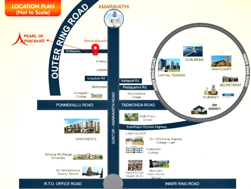 The plots range from 153 sq. yds. to 1583 sq. yds., catering to diverse requirements, from compact residential spaces to large, luxurious layouts. Its strategic location near Amaravati enhances the project’s value, offering excellent connectivity and proximity to key urban hubs, while still providing a peaceful residential setting for families and investors alike.