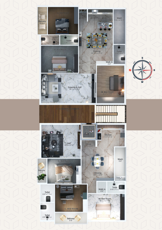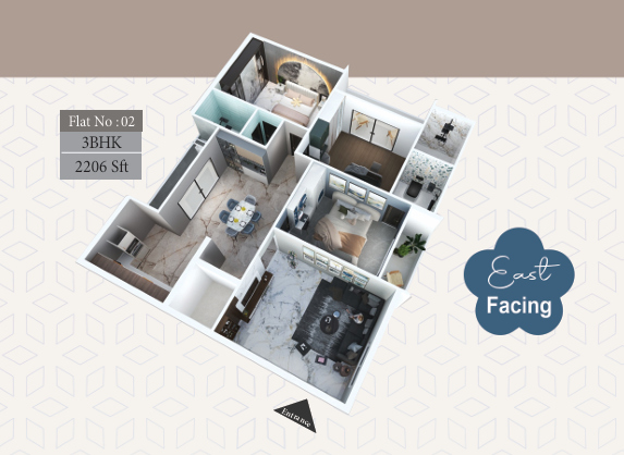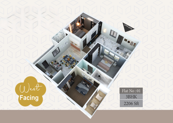 Currently under construction, MVR Prime features units sized at 2206 sq. ft., providing residents with generous living spaces. The limited number of apartments ensures a close-knit community while maintaining exclusivity. With three well-planned bedrooms and contemporary design, these homes are ideal for urban families looking for quality living in Guntur’s prime residential area.