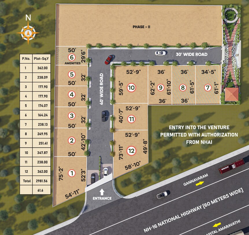 With its limited number of plots, SAV Brundhavan promises a close-knit community atmosphere while ensuring privacy and exclusivity for each resident. The project is positioned to balance modern living needs with open green surroundings, making it an ideal choice for those seeking a residential investment in Vijayawada. It offers both convenience and a sense of tranquility, creating an opportunity for families to design and enjoy a personalized living space in one of the city’s promising localities.