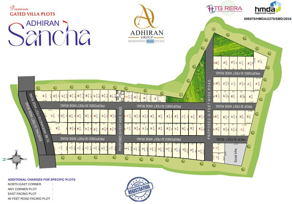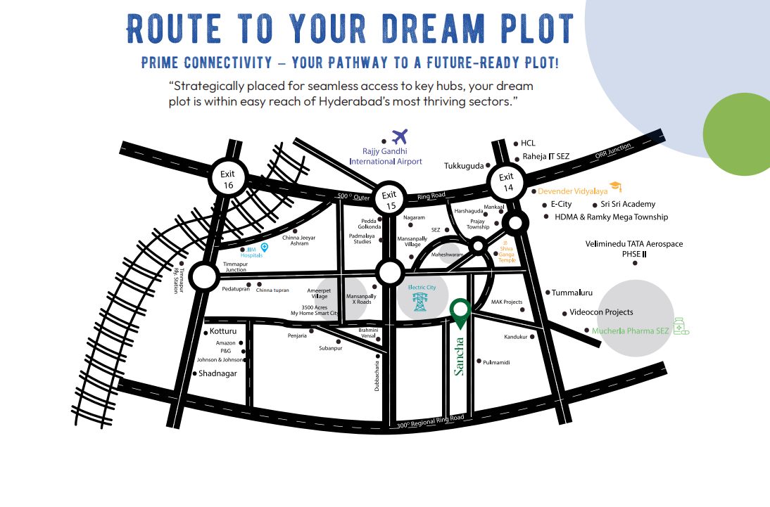 Adhiran Sancha is a premium gated community offering HMDA-approved residential villa plots in Maheshwaram, Hyderabad. Spread across 4 acres, this thoughtfully planned project is designed to provide a peaceful and well-connected lifestyle for modern families.