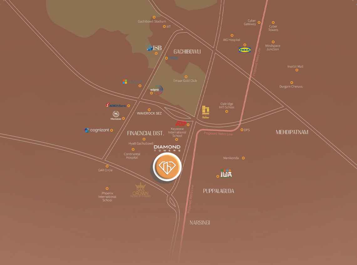 With a total of 486 meticulously planned units ranging from 2,765 sq. ft. to 4,205 sq. ft., R One Diamond Towers redefines high-rise luxury in Hyderabad. Positioned in the heart of the city’s IT and business hub, it ensures excellent connectivity and access to major workplaces, lifestyle avenues, and educational institutions, making it a perfect choice for professionals and families seeking a high-end living experience.