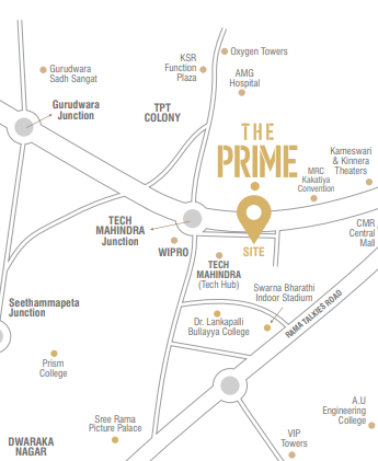 The Prime by GCON is a luxury residential project located in Satyam Junction, Visakhapatnam. This under-construction development features a single tower with 91 units of 3 BHK apartments, each ranging from 2,152 to 3,056 square feet. The project spans 14 floors and offers modern amenities such as a gymnasium, swimming pool, and lush green spaces. The apartments are Vastu-compliant and designed with no common walls for enhanced privacy. With 24-hour security, uninterrupted water supply, and a comprehensive fire-fighting system, the project ensures both comfort and safety for its residents.
