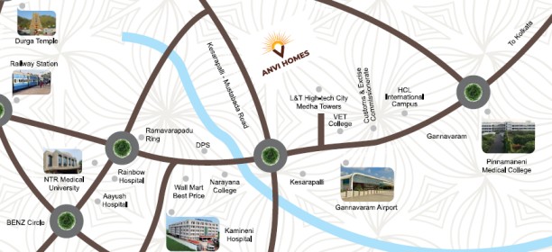 With 166 residential units ranging from 128 Sq.Yds to 260 Sq.Yds, Anvi Homes provides flexible plot options to suit varying needs and budgets. The project is strategically located near educational institutions, hospitals, and the Vijayawada International Airport, enhancing both convenience and value. Its proximity to Gannavaram IT hub and major transport links makes it a promising location for future growth, ensuring residents enjoy both comfort and connectivity in one of Vijayawada’s most sought-after localities.