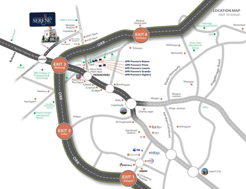 APR Praveen’s Serene by APR Group is a premium villa development located in Patancheru, Hyderabad, offering thoughtfully designed 3 and 4 BHK homes. Spread across approximately 31 acres, the project features a total of 489 units, making it a well-planned residential community that combines spacious layouts with modern living standards. The villas are designed to provide a comfortable lifestyle with ample open spaces, greenery, and a peaceful environment away from the city’s congestion while still maintaining connectivity to key employment hubs.