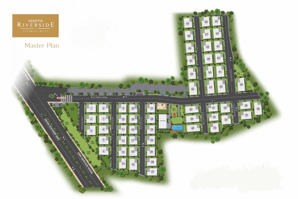 Keerthi Riverside Villas at Appa Junction, Hyderabad, offers an exceptional blend of luxury living and serene surroundings. This exclusive gated community features 57 premium 4 BHK triplex villas, thoughtfully designed to provide spacious layouts, superior comfort, and maximum privacy. With plot sizes ranging from 300 to 450 sq. yds, each villa boasts modern architecture, high-quality finishes, and ample natural light to elevate everyday living.