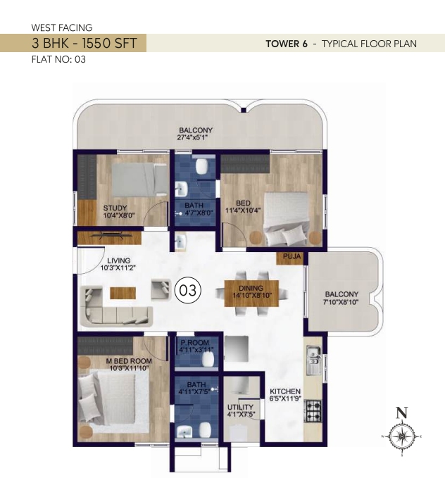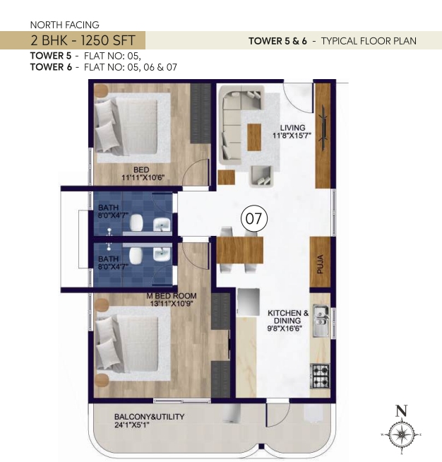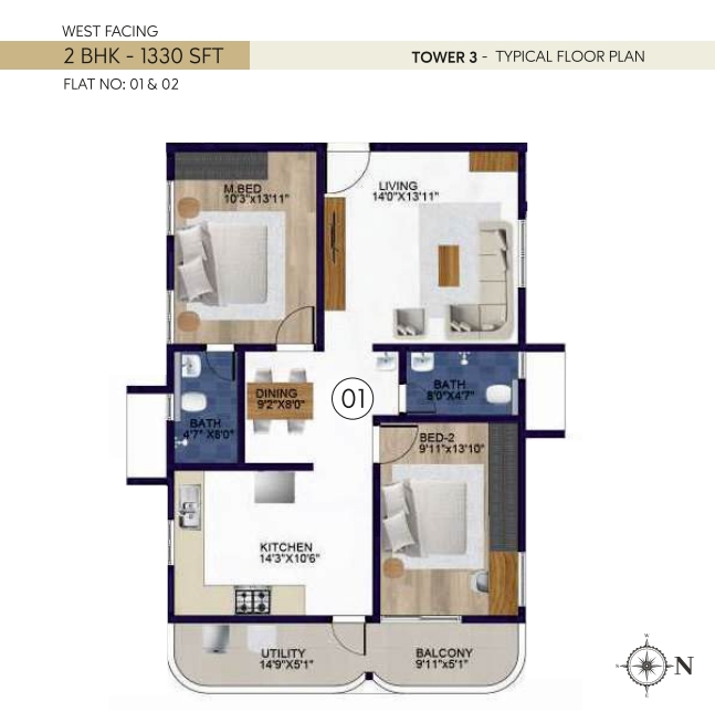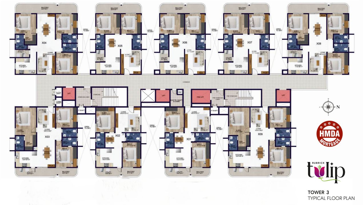 Rubrick Tulip in Thukkuguda, Hyderabad, is a premium residential community by Rubrick Constructions, designed to offer modern living with comfort, connectivity, and convenience. Spread across 6.5 acres, the project features 6 well-planned towers with 810 spacious 2 & 3 BHK apartments, ranging from 1100 sq. ft. to 2000 sq. ft. With 14 floors in each tower, residents enjoy panoramic views, ample natural light, and thoughtfully designed layouts that enhance everyday living.