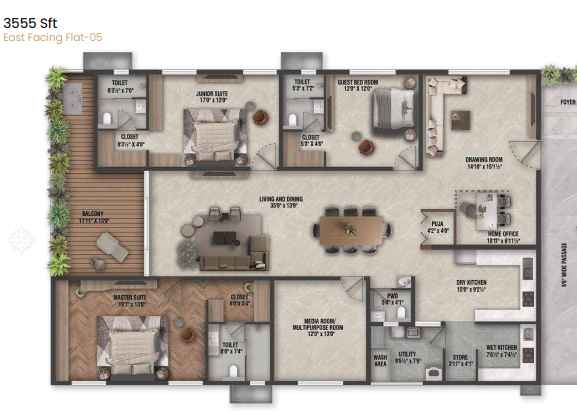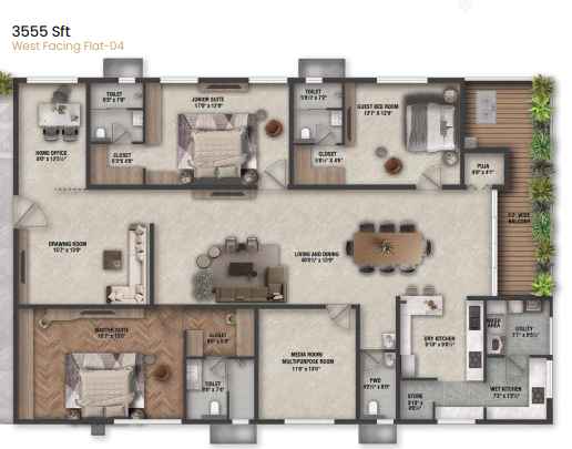 With unit sizes ranging from 3,555 sq.ft to 5,555 sq.ft, Savya Realty The Edition focuses on low-density living and thoughtfully planned layouts. Currently under construction, the project emphasizes privacy, comfort, and contemporary design, making it an ideal choice for homebuyers seeking luxury apartments in a prime IT corridor location.