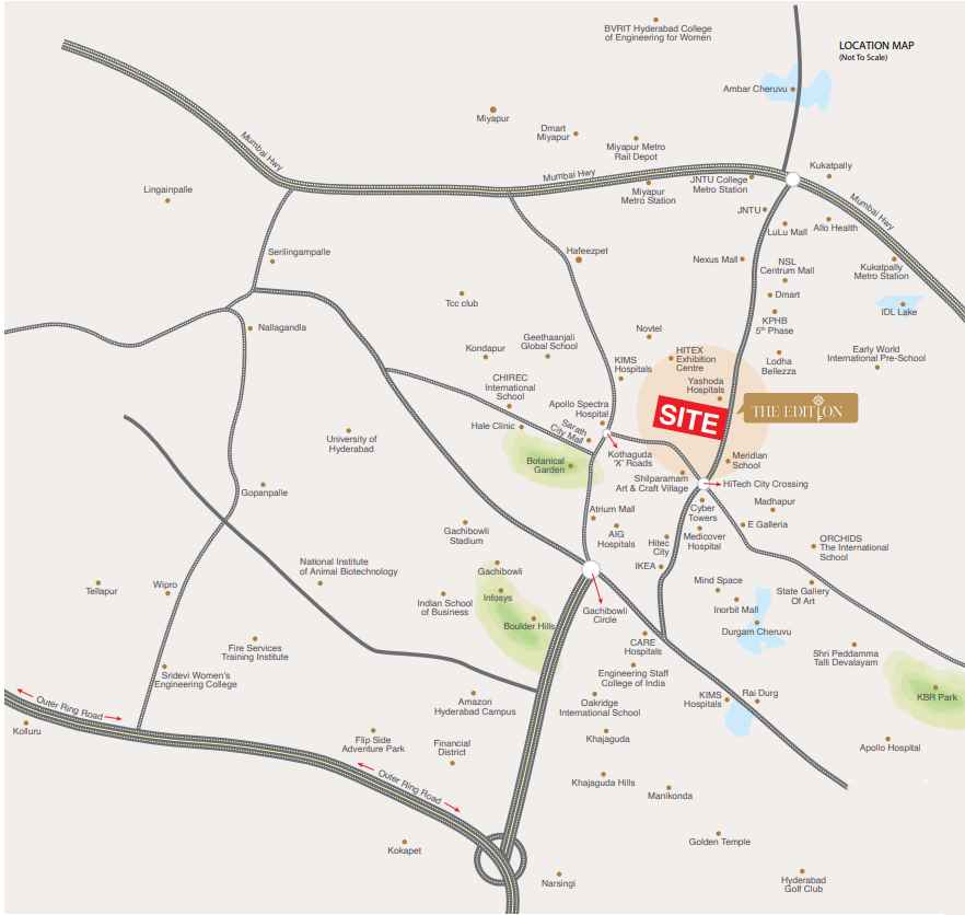 Savya Realty The Edition is a premium residential apartment project located in the heart of Hitech City, Hyderabad. Spread across 2.45 acres, the development features a single elegant high-rise tower with 19 floors and a total of 151 exclusive homes. Designed for spacious and refined living, the project offers large-format 3.5 and 4.5 BHK residences that cater to modern urban lifestyles.