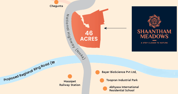Shaantham Meadows is a well-planned residential plots project designed for those looking to build their dream home in a calm and organized community. Spread across 46 acres, the project offers 545 thoughtfully laid-out plots, giving buyers the flexibility to choose plot sizes that suit their requirements. The layout focuses on open spaces, proper road planning, and a balanced environment that supports comfortable living.