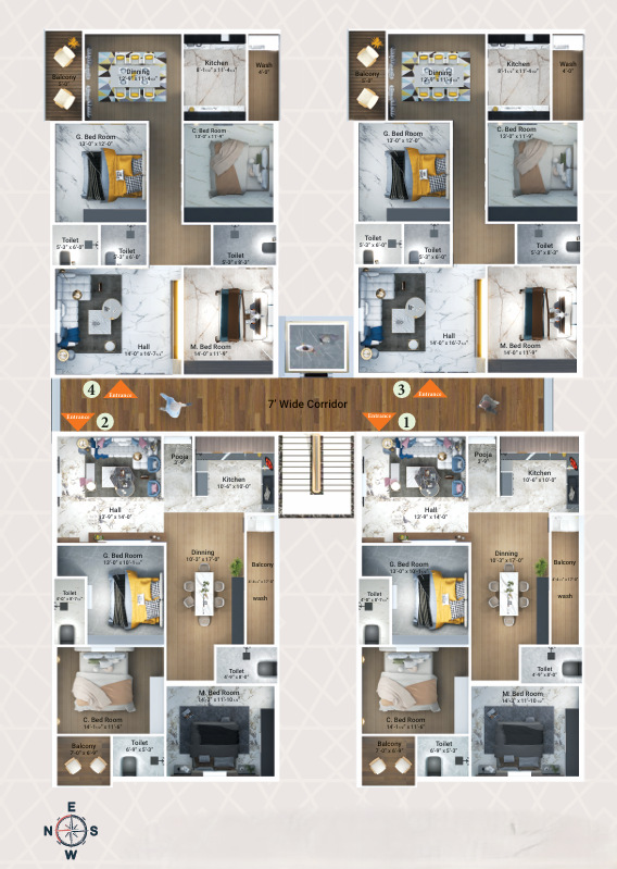 The project is currently under construction and comprises 20 units spread across five floors. Each apartment spans 1910 sq. ft., offering residents generous living areas and well-structured rooms. With three bedrooms and contemporary design features, Sunees Pride caters to the needs of modern families while maintaining exclusivity and a sense of community in Guntur’s growing residential landscape.